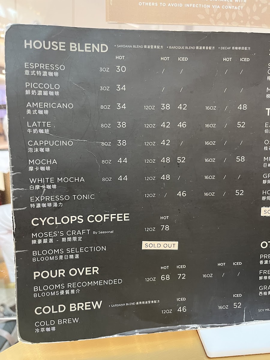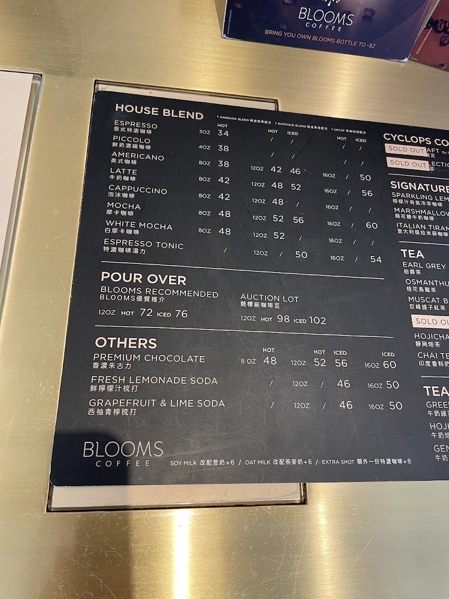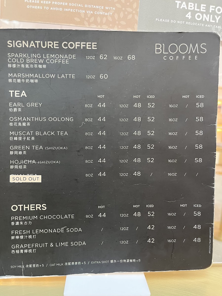 Blooms Coffee (APM) Menu